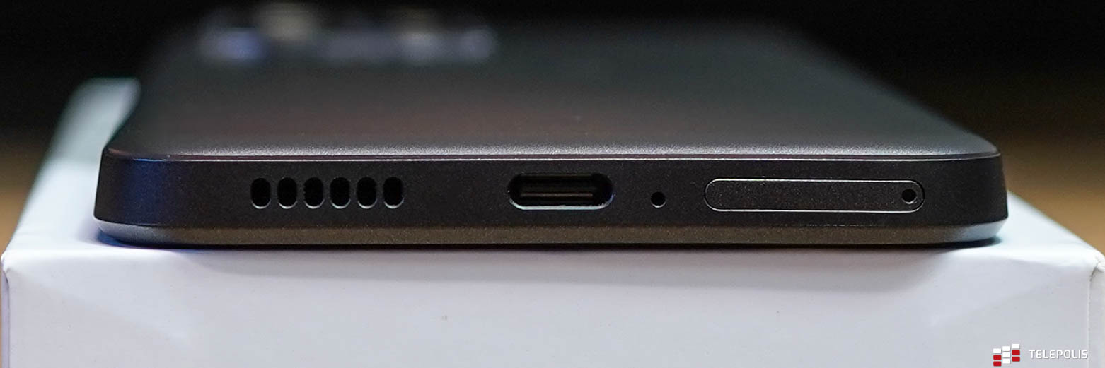 Otwór kolejnego mikrofonu znalazł się na dole. Z tej strony mamy też port USB-C, wylot głównego głośnika oraz wysuwaną tackę na karty. Po przeciwnej stronie producent umieścił gniazdo audio Jack 3,5 mm oraz otwór jeszcze jednego mikrofonu.