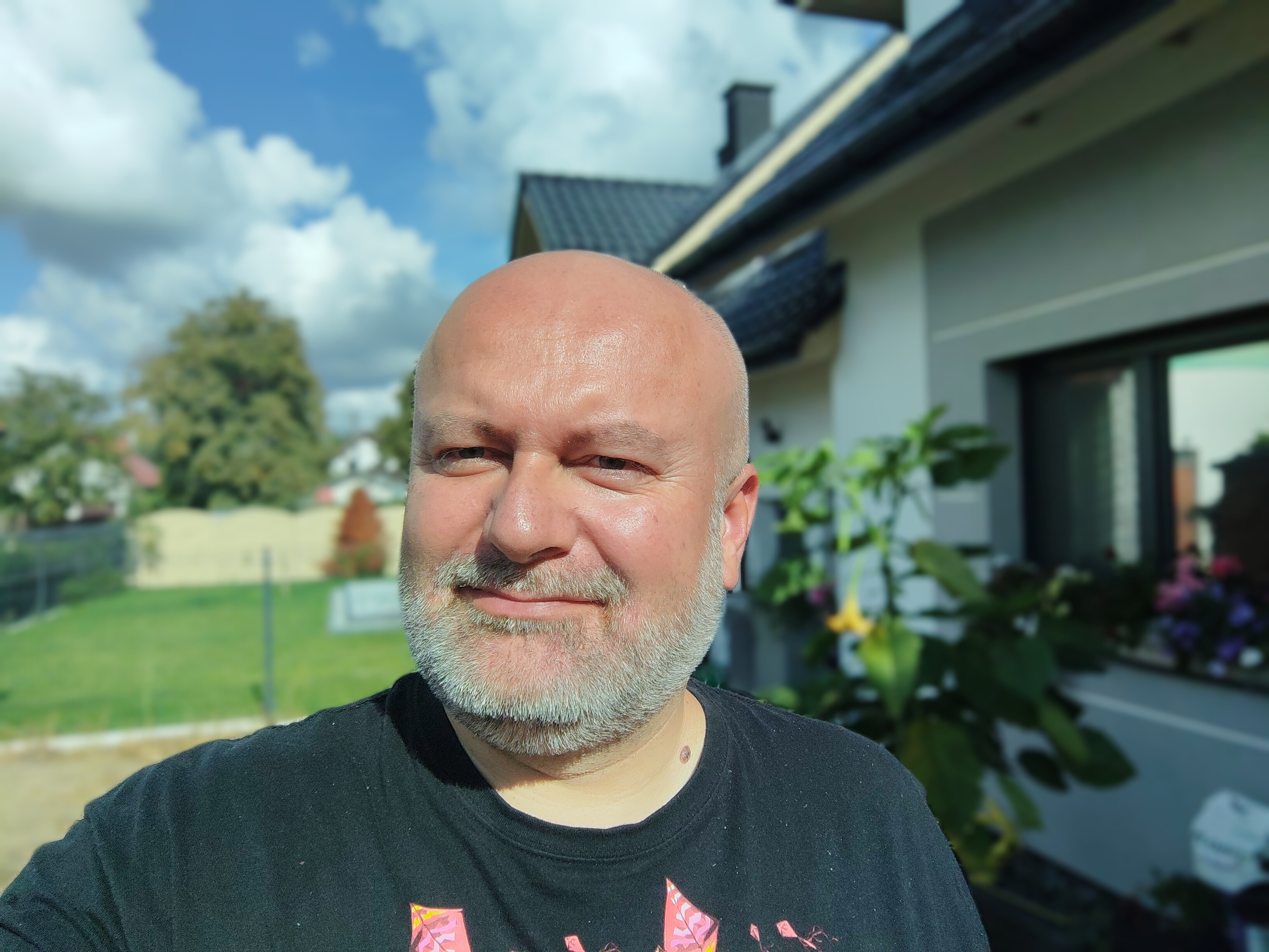 Przedni aparat o rozdzielczości 32 Mpix robi domyślnie zdjęcia o rozdzielczości 8 Mpix i nie ma potrzeby zmiany tego faktu. W zamian otrzymujemy dobre jakościowo zdjęcia, z naturalnymi odcieniami koloru skóry na twarzy. Bardzo dobrze wyglądają portrety z ładnie rozmytym tłem.