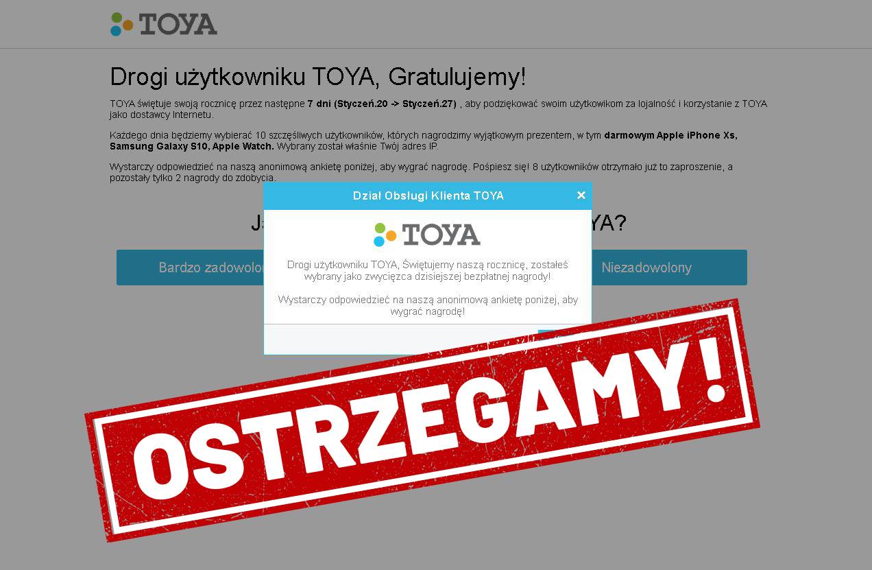 Toya ostrzega przed fałszywym konkursem. Nie ma nagród, jest malware